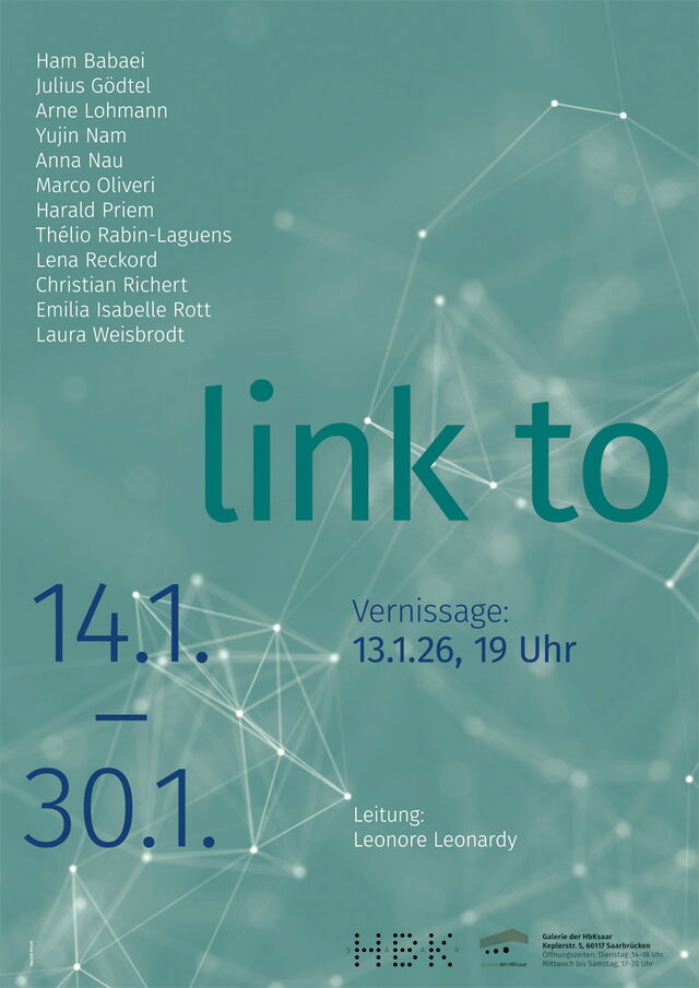 »link to« ist eine künstlerische wie kuratorische Auseinandersetzung mit Verlinkungen, Kooperationen und Anschlüssen – mit all jenen Verbindungen, die unser Denken, Lernen und Handeln prägen. Im Fokus stehen dabei nicht nur offensichtliche Netzwerke, sondern auch verborgene, fragile oder ambivalente Beziehungen, insbesondere im Kontext des Lernorts HBKsaar.